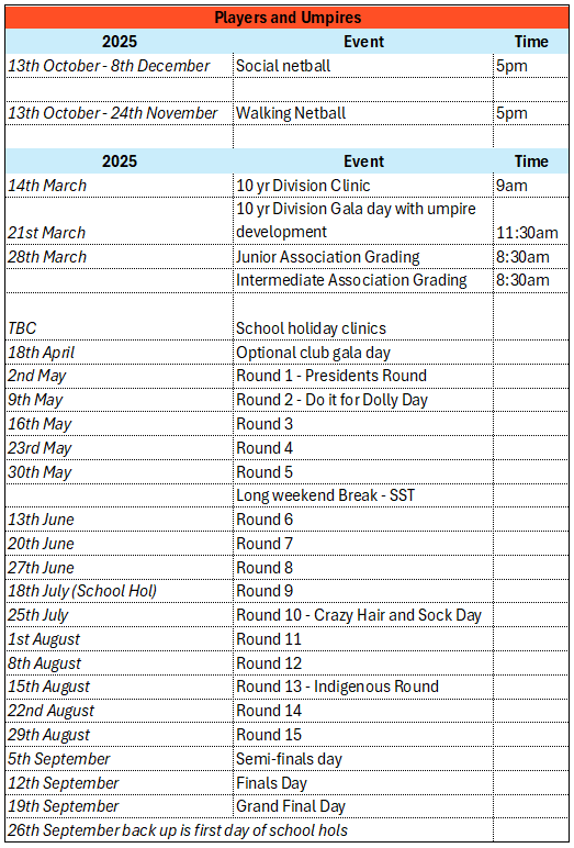 For all fixtures and draw information, please make use of the Netball HQ website or app. Draws become available following the completion of all Grading for the season and can be updated regularly.